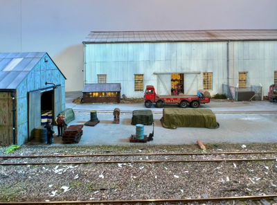 Built to 7 mm scale, track gauges of 32 mm and 16.5 mm. An entirely freelance industrial type railway, featuring standard and narrow gauge trains fitted with sound, radio controlled gantry crane and lorries. All the buildings are scratch built from MDF, cut on a laser cutter.