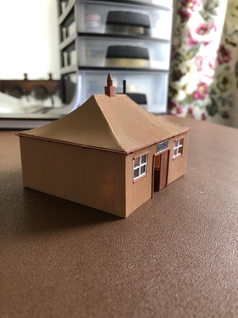 As it is a model of an actual building it was scratch built, although I do have scaled prints of the actual building. The walls and roof were Slaters Corrugated iron. To get the curve on the roof, I cut the shape as near as possible to the size I needed, put it in a mug or plant pot of boiling water, with the correct diameter, then swapped it to the outside and let it cool to shape. I also built some formers in the roof of the building to help with correct shape. Once glued, I just need to file any surplus off. On the building, it looks as though, there was lead flashing on the corners of the roof, I found the best way to represent this was to leave the side edge of the plasticard, which gave a reasonable representation of what it is suppose to be.