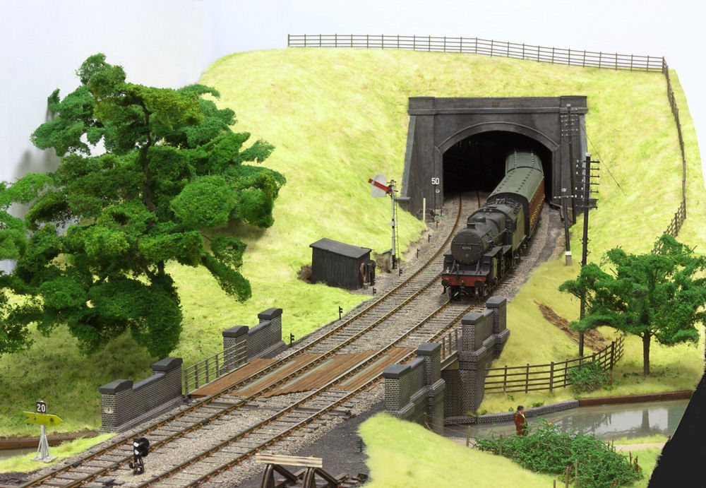 Our O gauge Finescale layout is based on a fictional station set on the now closed ex-LNWR line between Whitchurch and Chester in Shropshire in the period 1954 - 1964. Although there was never a large station with a yard at Grindley Brook, but just a wooden halt, the location was chosen as the point at which the railway crossed the Llangollen Canal.