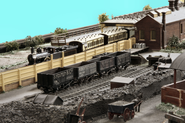 This is the model is of Aylesbury LNWR, and is the first station in Aylesbury running in from Cheddington - and located where B&Q now is. It is to EM gauge and was built by Geoff Williams and his sons. Originally a loft layout, this is the second attempt by Geoff and was modelled in the early 70s’. The layout depicts the whole of the station complex with engine shed, goods yard and gas works. The railway is set amongst the back drop of the town and has been created with meticulous attention to detail and research. The scenic side features cunning use of decreasing perspective modelling to achieve a greater sense of depth.