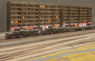 This layout was inspired by my many trips to China from 1993 to 2015 to photograph the last of Chinese steam. The layout is set in 2001 and, by then, the remaining steam action was mainly centred around heavily polluted industrial cities in the north of China and Beijiao is a fictitious version of such a city – in many ways the real China, the China which few tourists ever see. There are three distinct systems on display. Firstly, at the back of the layout we have an industrial railway linking coal mines off stage to the left with a steelworks off stage to the right. Access to the steelworks is up a 1/30 grade and so uphill trains require the help of two bankers on this section. There is also a passenger service for the steelworks workers, many of whom live in the drab tenements around the station.