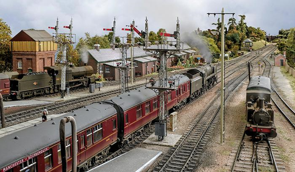 All stock on the layout is owned by the operators but we are very particular about what is allowed and how it’s portrayed. The period we chose to model gives a bit of leeway as it was a period of change. The layout is fully Digital Command Control (DCC) fitted using the Digitrax system and we aim to get the best out of this form of control. Most locomotives are sound fitted and one of our group is developing a unique steam system which has to be seen to be believed. It is very realistic and has already caused much comment at the exhibitions we have attended. Look out for it operating at the Great Electric Train Show in October. The coaches are a mix of Bachmann Mk 1s and Hornby Maunsells with some kit built examples thrown in where an item is not available ready-to-run such as the Stanier 12 wheel diner in the ‘Pines Express’ and many of the London and North Eastern Railway coaches. We still await some up to date Bulleid stock and in the meantime have to rely on a mix of detailed Bachmann and kit built vehicles. Rakes are permanently coupled and we developed our own coupling system to allow close coupling whilst still enabling pulling and propelling through the complex of station point work. Ends of the rakes are fitted with Kadees as are all the locomotives. These couplings are fantastically reliable if fitted correctly. The station pilot is either a kit built ‘M7’ 0-4-4T (South Eastern Finecast) or a Bachmann Ivatt ‘2MT’ 2-6-2T. Both are fitted with auto uncouplers, again something only DCC allows us to do. Bulleid ‘Pacifics’, both unrebuilt and rebuilt are all Hornby, ex-LMS types are Bachmann and Hornby as are the BR Standards. Most of the classes of locomotive that ran into Bournemouth West during the period modelled are represented. In the wings, and awaiting trials is the new Hornby ‘Lord Nelson’ 4-6-0. Where locomotives are not available ready-to-run they are kit built such as a ‘Q’ 0-6-0 which operates a Salisbury train. All locomotives have had a number changes to represent known visitors and they all have real coal, crews and the appropriate lamp or disc codes.