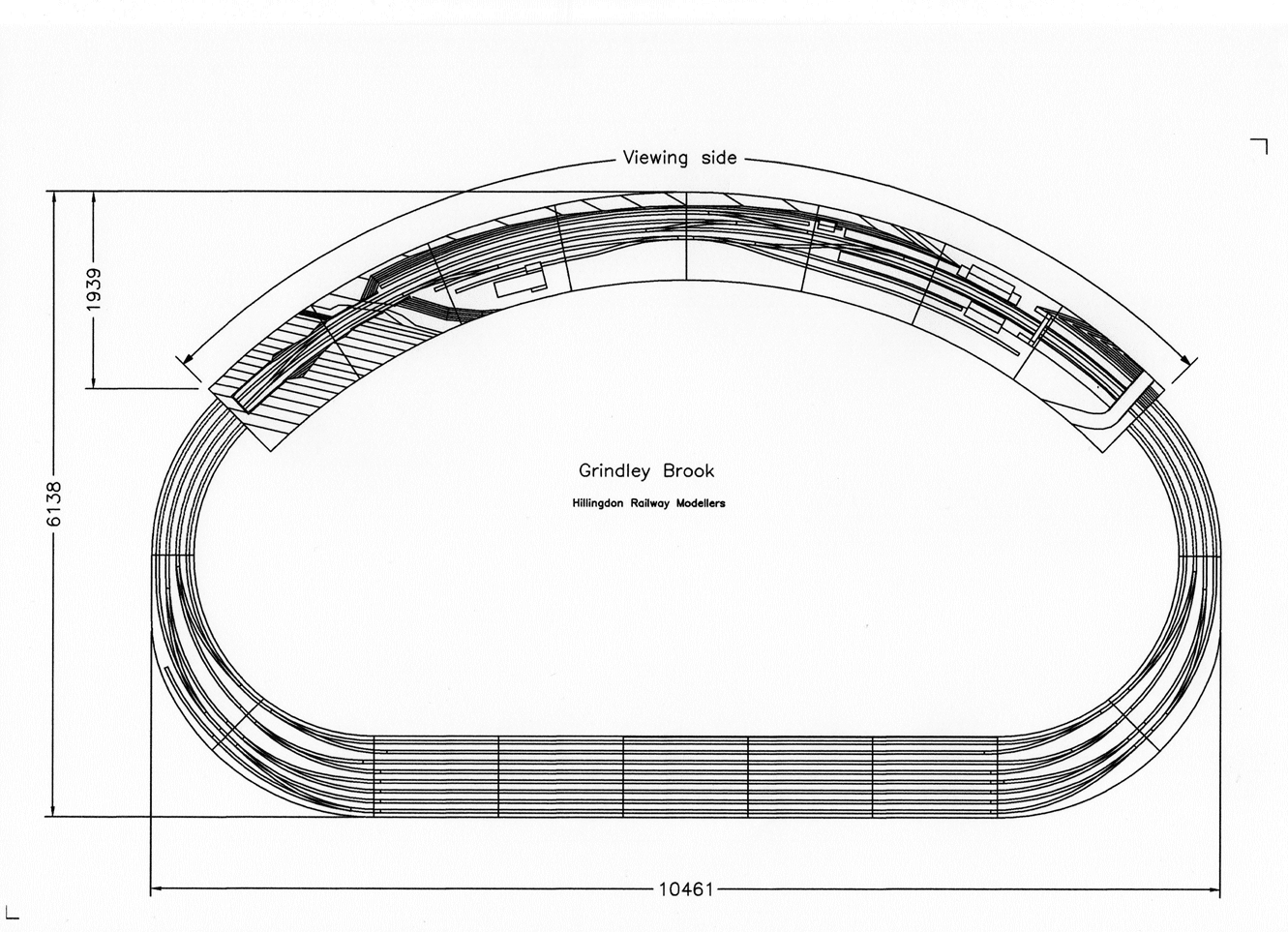 The overall dimensions of the layout are 10.46m x 6.14m, as shown on the appended drawing. Although it is operated from within, we will require 3 to 4 feet behind the layout to allow the operators to access the outer sidings in the storage yard. The provision of some form of reasonably robust barrier systems, such as those available from the CMRA is highly desirable.
