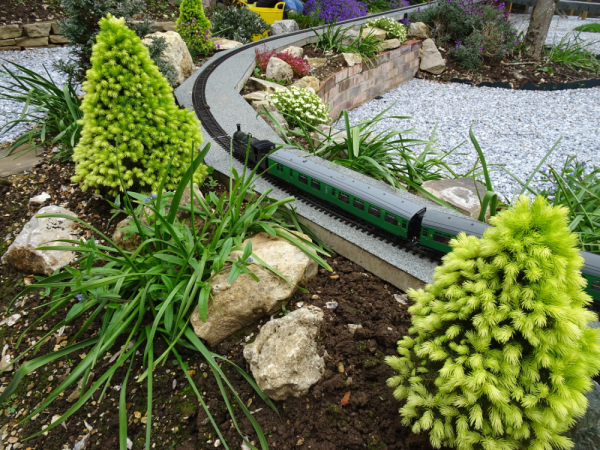 The video shows you the inside of the shed and the garden railway so far. The layout has the trackwork largely complete, some buildings in place, but no real scenic work carried out yet. The garden railway section has reached a stage where trains can be run, but much more work is needed.