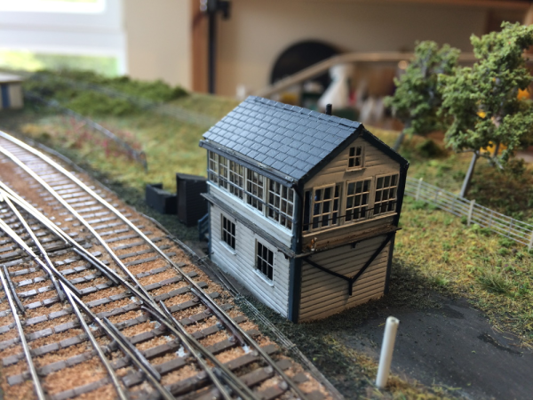 The layout is built to 2mm Finescale standards using 2mm Scale Association components including Easitrac for the plain line. Points and signals are servo controlled from a DCC handset, eliminating the need for a control panel.