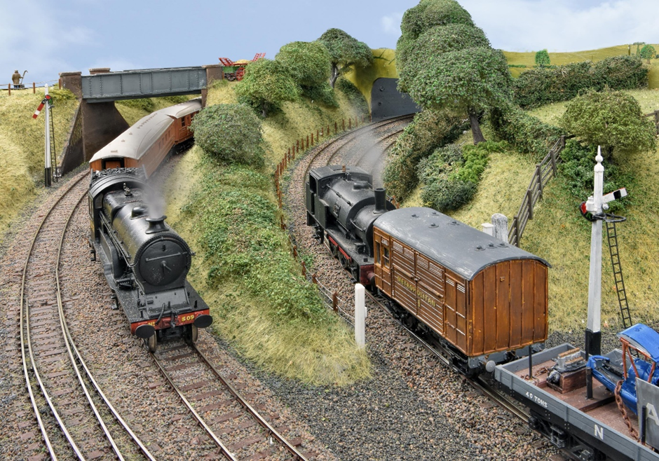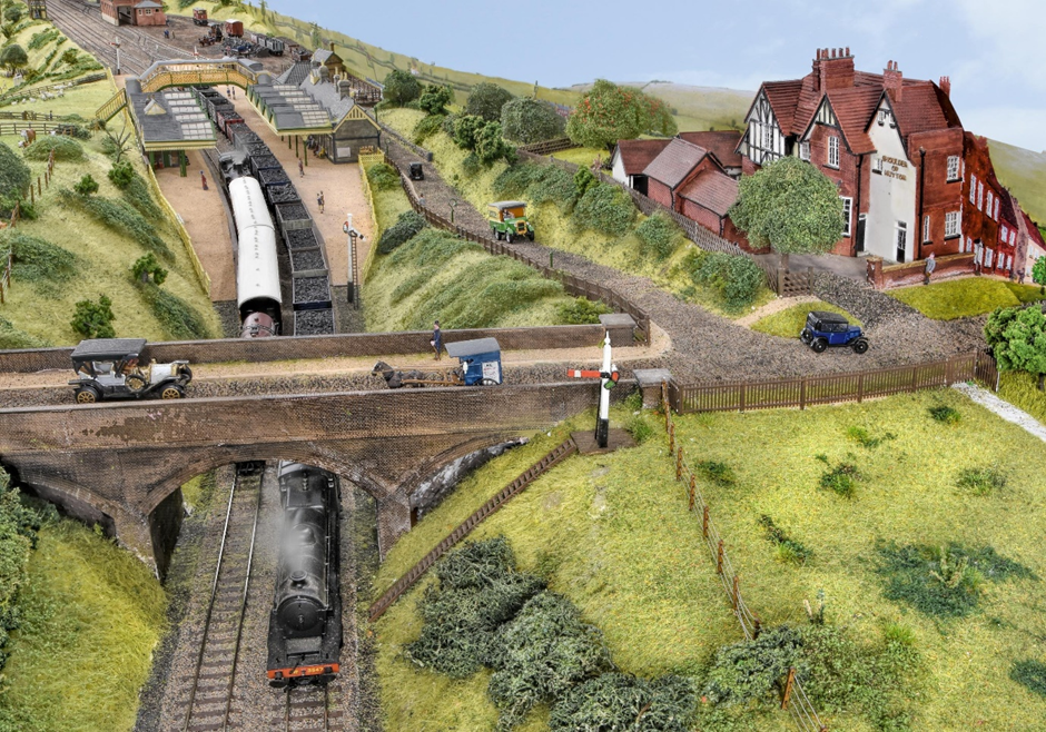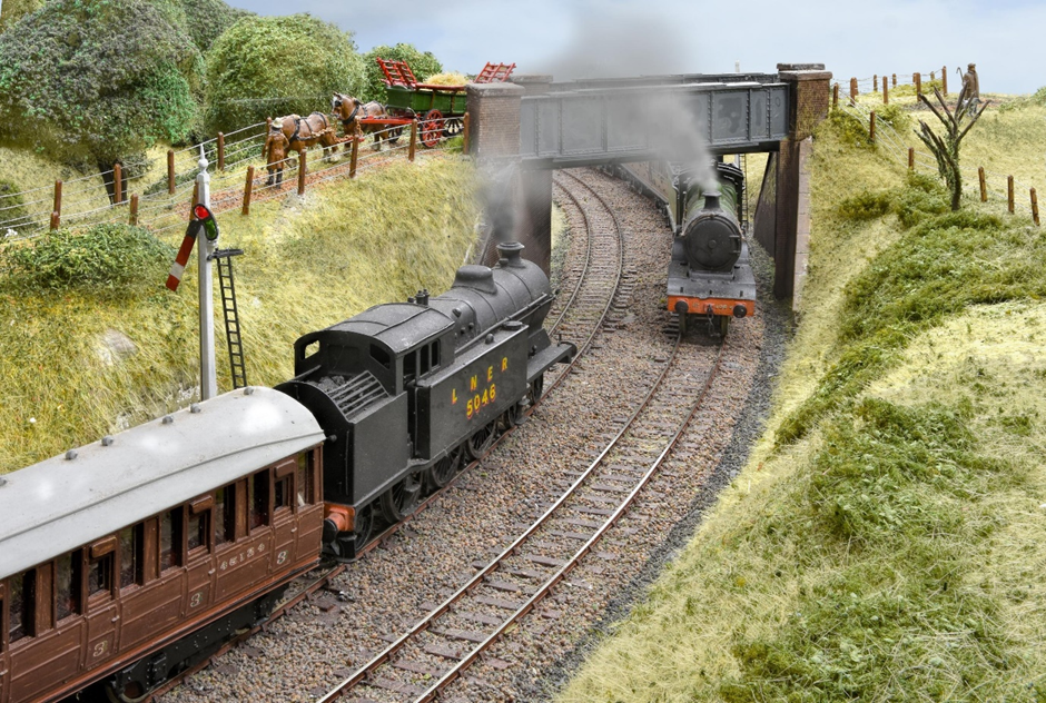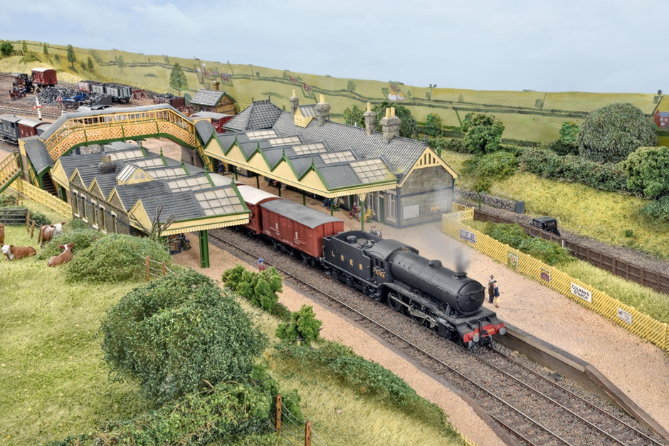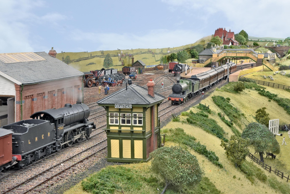 Above: LNER Robinson ‘C13’ 4-4-2T 5193 approaches Wendover with a Marylebone-Aylesbury stopping train. Note the Hereford cows in the foreground to suit the period of the layout.