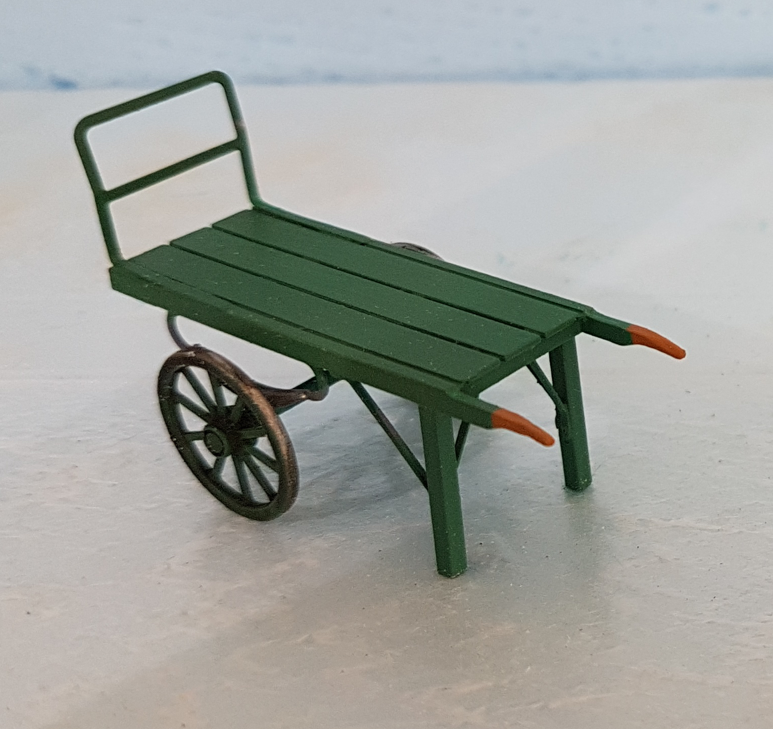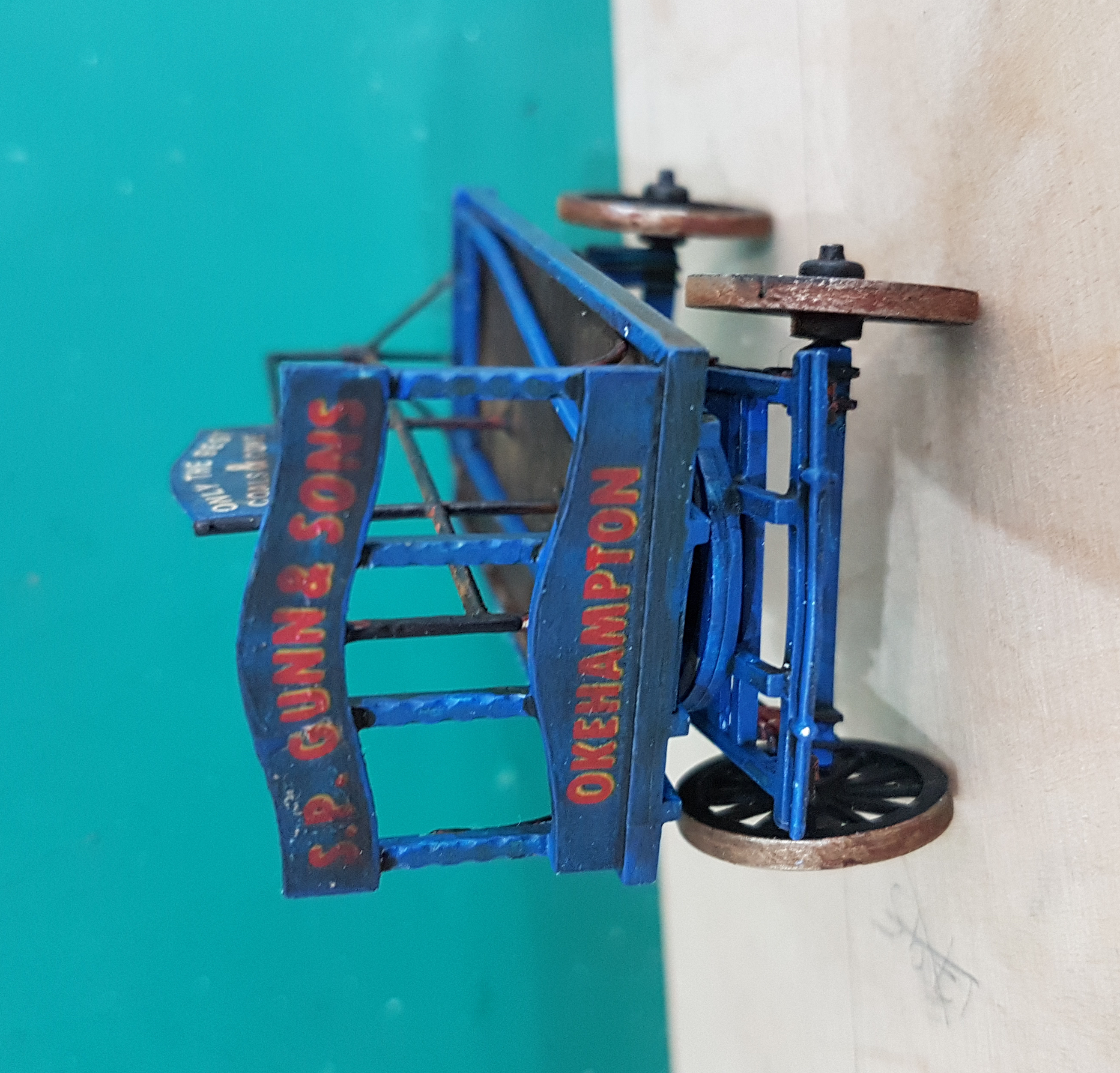 O Gauge, 1:43. Made from a white metal kit by S&D Models. Painted in acrylics with home-made decals. I had to laser cut a couple of missing parts and resin cast a missing spring. This will sit at the back of Gunn’s Yard on Okehampton as it has been replaced by the lorry I previously built.