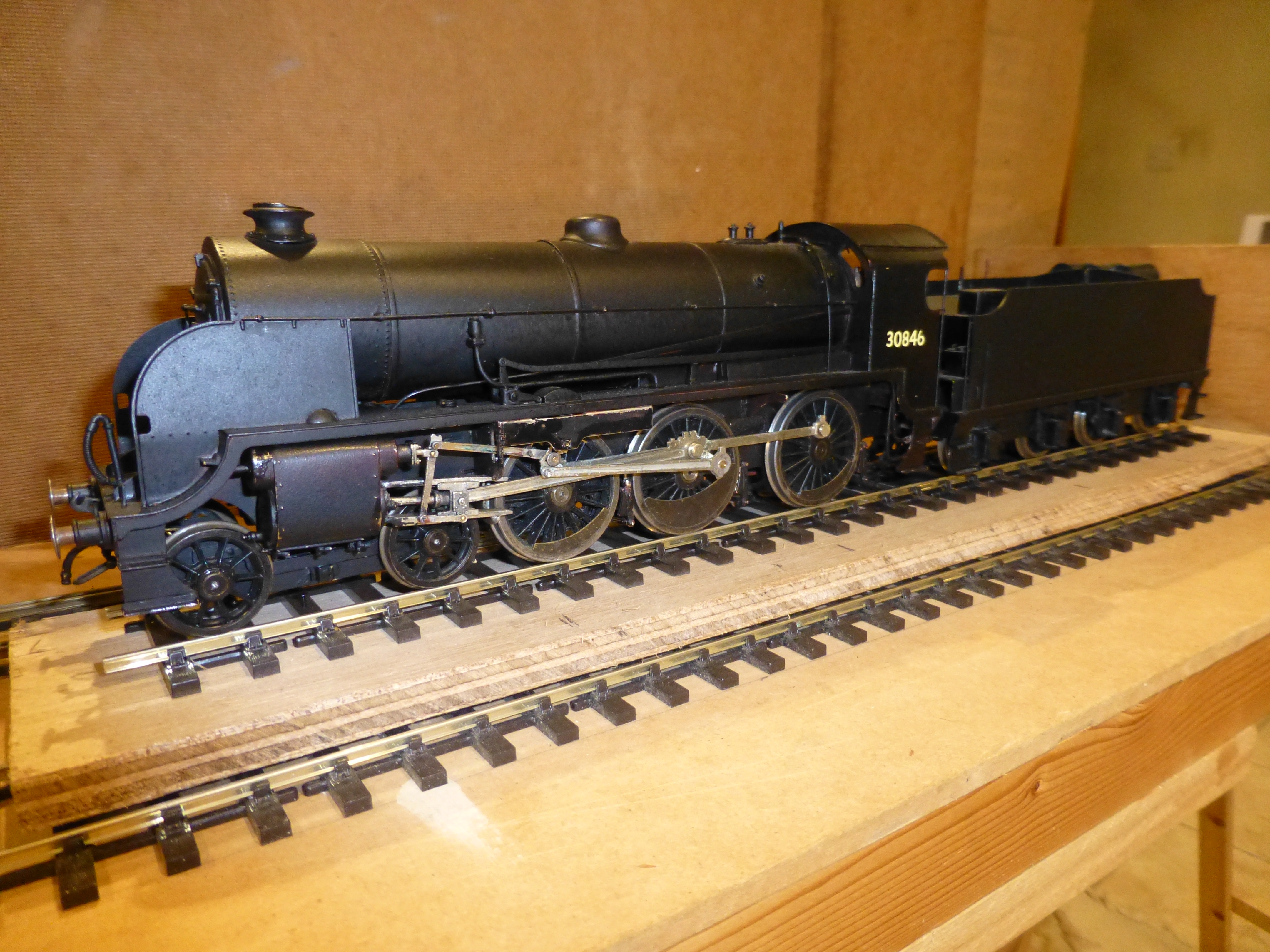 This is an ex SECR class D 4-4-0 loco built from a David Andrews kit, in 7mm finescale with Slaters wheels. It has all wheel pickup, Portescap motor and gearbox, DCC fitted, but not sound, weathered to in-service condition in around 1953. Hand lined loco, and transfers on tender. Some parts on tender and loco were obtained from the scrap box as the ones in the kit were not right. Crew by Modelu hand painted. Number 31737 is the engine which has been preserved in the national collection.