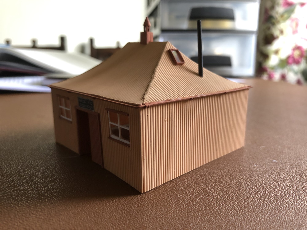 As it is a model of an actual building it was scratch built, although I do have scaled prints of the actual building. The walls and roof were Slaters Corrugated iron. To get the curve on the roof, I cut the shape as near as possible to the size I needed, put it in a mug or plant pot of boiling water, with the correct diameter, then swapped it to the outside and let it cool to shape. I also built some formers in the roof of the building to help with correct shape. Once glued, I just need to file any surplus off. On the building, it looks as though, there was lead flashing on the corners of the roof, I found the best way to represent this was to leave the side edge of the plasticard, which gave a reasonable representation of what it is suppose to be.