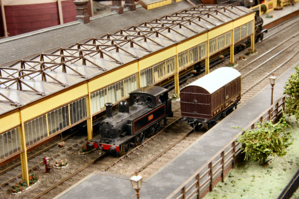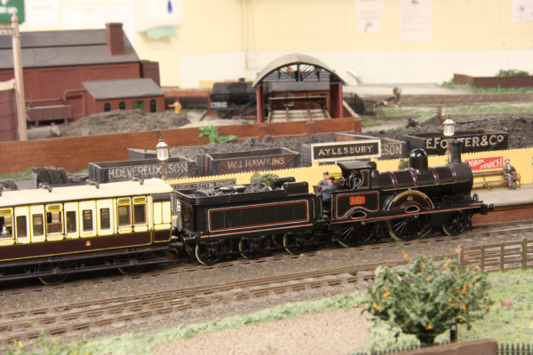 This is the model is of Aylesbury LNWR, and is the first station in Aylesbury running in from Cheddington - and located where B&Q now is. It is to EM gauge and was built by Geoff Williams and his sons. Originally a loft layout, this is the second attempt by Geoff and was modelled in the early 70s’. The layout depicts the whole of the station complex with engine shed, goods yard and gas works. The railway is set amongst the back drop of the town and has been created with meticulous attention to detail and research. The scenic side features cunning use of decreasing perspective modelling to achieve a greater sense of depth.