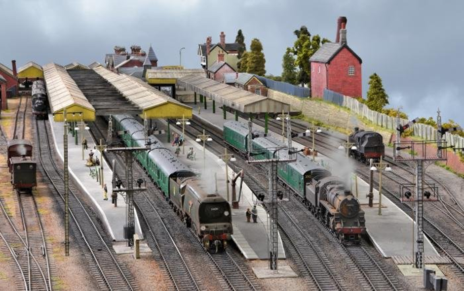 It takes an absolute minimum of five operators to run the layout at exhibitions but more are needed to give people a break from time to time. A sequence of trains is run that seeks to represent most of the services that ran into and out of Bournemouth West in the period modelled and this lasts approximately three hours. West was a very busy station on weekdays but particularly on summer Saturdays. Trains from Waterloo either continued down to Bournemouth West from Bournemouth Central or were split at Central with a portion going to Weymouth and the remainder going on to West. In addition there were other services over the old London & South Western Railway lines from Fareham and Brighton. The highlight of these Southern services was the ‘Bournemouth Belle’. We run this with a rake of 11 Hornby Pullmans hauled by a ‘Pacific’, as well as the other services mentioned above.