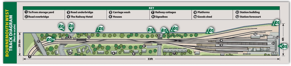 Scale: 4mm: 1ft Gauge: ‘OO’, 16.5mm Size: 33ft x 15ft