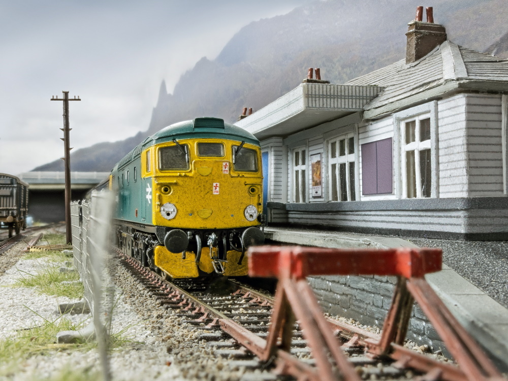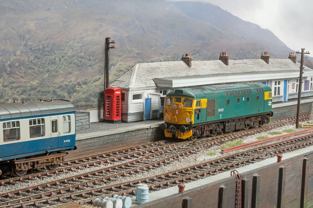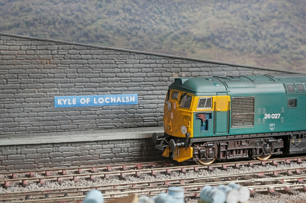 The layout era begins late 70’s to capture the overlap between class 24’s and class 26’s with the gradual replacement by class 37/4’s. The rolling stock modelled, all being visitors to Kyle, are primarily ready to run models, which have been detailed and the wheels reprofiled to 2mmFS standards. Over time, chassis are gradually being replaced with 2mmFS etches.