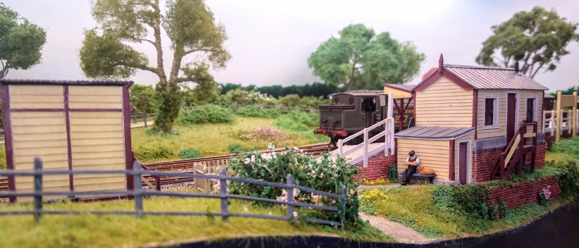 A particular interest was to build models of the watermill and mill cottage. The original buildings were at Tablehurst Farm in Forest Row (near East Grinstead). The mill was demolished in 1933 but the cottage still exists. The coal office is a typical LBSCR goods lock-up and the station building is a reduced version of those found on the Kent and East Sussex Railway. The railway runs in two periods; Southern Railway in the early 1930s and the pre-grouping era when trains from both the LBSCR and SECR may be seen.
