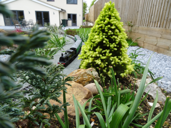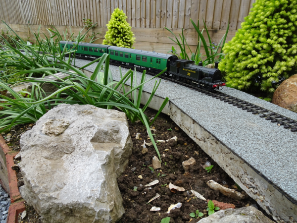 The video shows you the inside of the shed and the garden railway so far. The layout has the trackwork largely complete, some buildings in place, but no real scenic work carried out yet. The garden railway section has reached a stage where trains can be run, but much more work is needed.