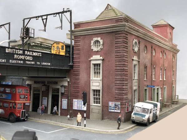 The main station building is scratch built, courtesy of my CAD design the Risborough & District Model Railway Club's laser cutter. My design was based upon historical records and a significant number of photographs, both my own and what I could find on the internet. The cornices are wooden molding from The Model Shop at Tower Bridge. The art deco lights at the front of the station are made from Biro pen shafts and are fitted with LED lights. The roof tiles are made of individually cut strips of standard printer paper. The hip tiles are card formed with a paper hole puncher. Signage is supplied from Sankey Scenics and Slaters raised lettering.