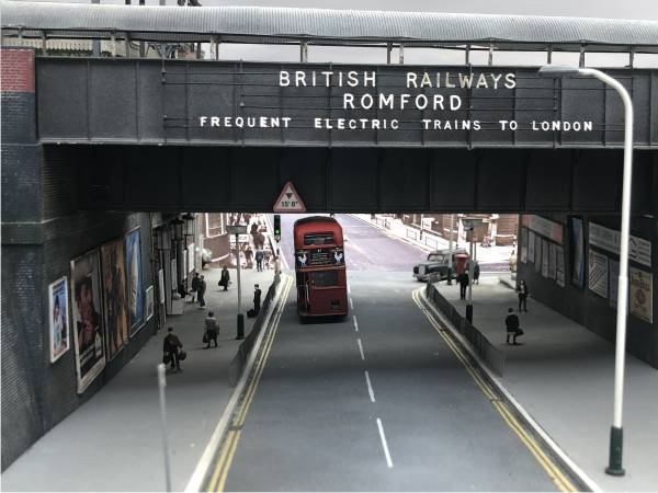 The current diorama is based around the main station area and is made up of the Up and Down Electrics and Mains, with the start of the branch line to Upminster. The track is from C&L and is a mixture of timber and concrete sleepers with both bullhead and flat-bottomed rail, as was present in the 1970s.