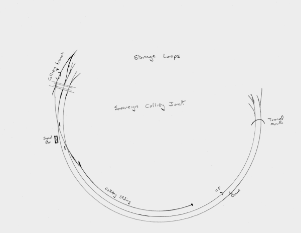 As with Mini-MSW, a circular format has been chosen to allow the longest possible trains in the smallest possible footprint. But this time, a colliery branch line and associated siding have been added to introduce a few diesels. Down the years the real route had around half a dozen of these short lines, opened and closed as the collieries they served sprang up and were worked out, with the final one disappearing in 1978. There were both Old and New Sovereign Collieries, but there never was a Sovereign Colliery Junction.