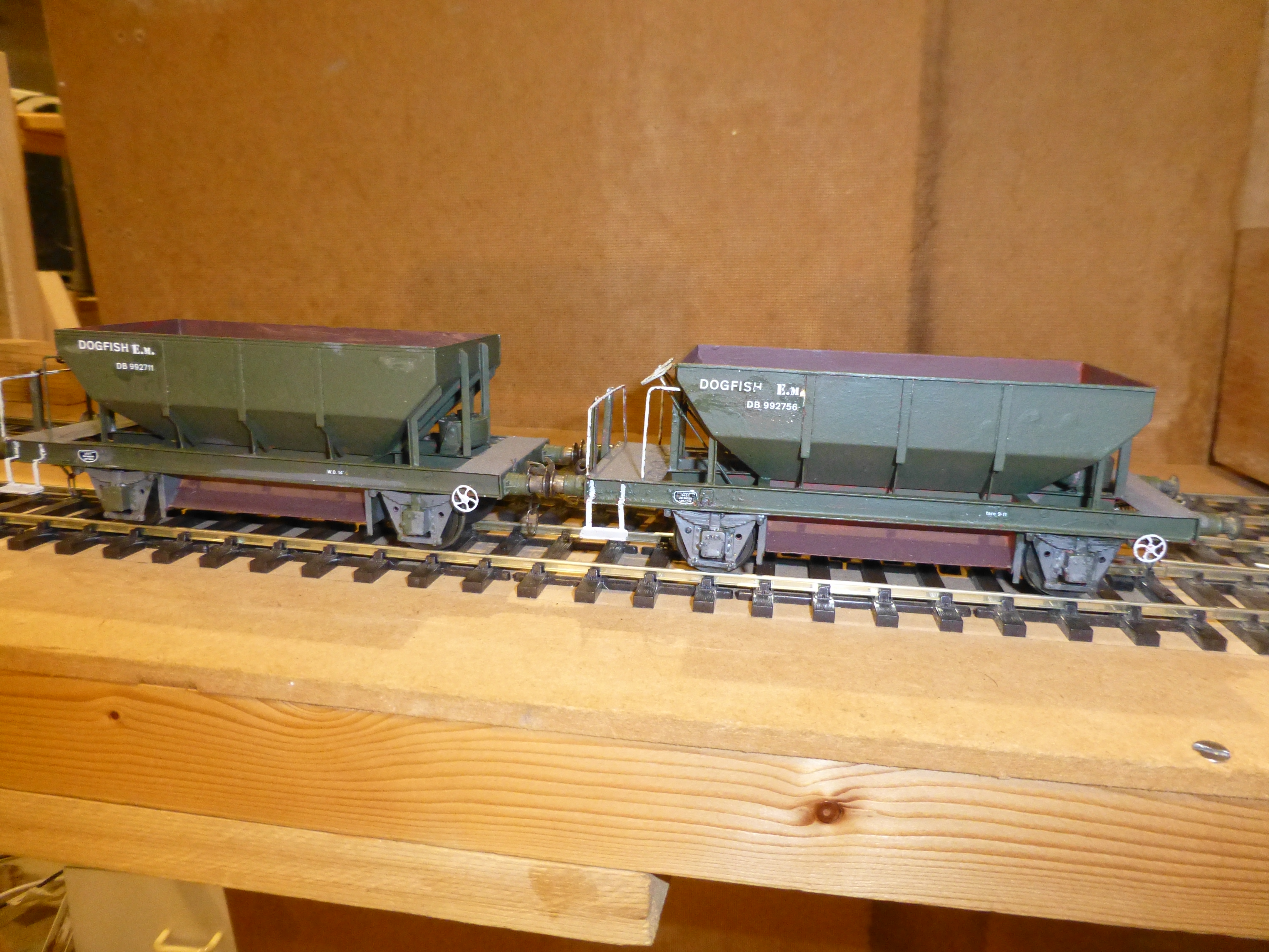 Etched brass kits purchased at O gauge meetings but not assembled until lockdown created time to make-up 'all unbuilt stuff on the shelves'. Helpful article on ballast wagons in trade magazine provided colour images which were satisfied by a raid on Warhammer shop for the appropriate coloured paints.